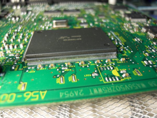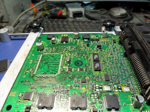 Después de un accidente, el lanzamiento del coche Nissan Maxima 3.5L 2008 dejó de funcionar. Debido al cortocircuito en el arnés de cableado, la unidad de control del motor dejó de comunicarse con los diagnósticos. Descubrimos que el controlador de la fuente de alimentación de 5 voltios está defectuoso, debido a esto el procesador se “quemó”. Reemplazamos el procesador y los controladores defectuosos.